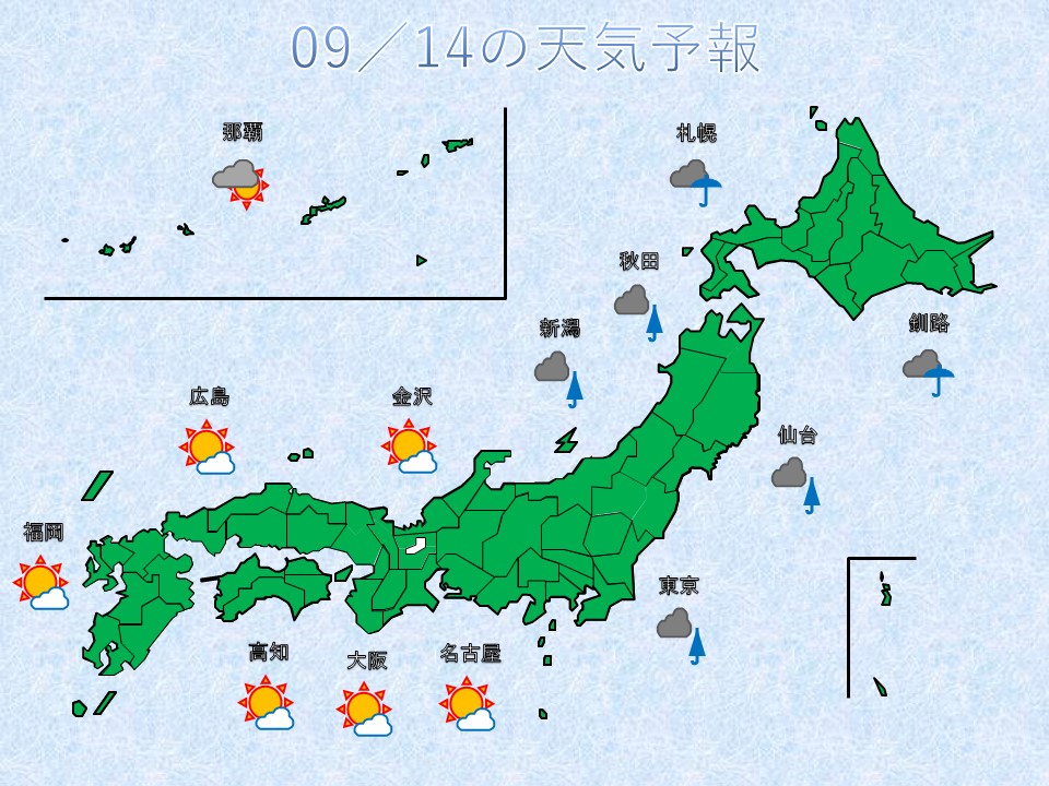 2020年09月12日18時実況天気図~14日09時予想天気図